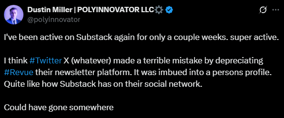 What I find really interesting is the comparison to the late “Revue” platform that Twitter owned. It was a newsletter bridge, where people would find it via your twitter/x profile, and then be brought to the newsletter platform Revue to read. However it also helped you connect to your actual email marketing tools too.